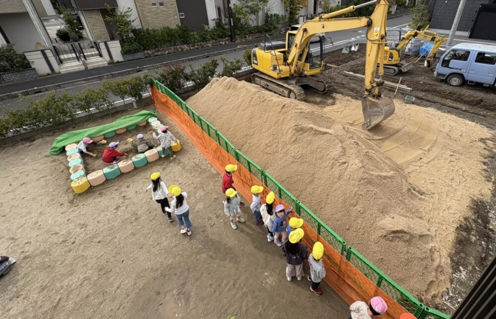 子どもたちは、日々移りゆく環境に関心を寄せながら、楽しそうに工事の様子を見つめる姿が見受けられます。