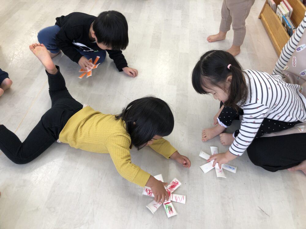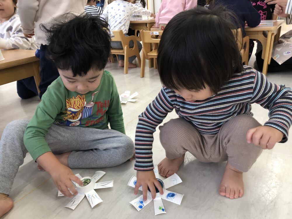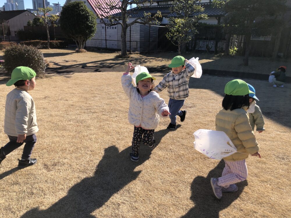 イオンモール与野ルピナス保育園 園の様子 2026.01.30 お正月あそび(にじぐみ) みんなでお正月遊びをしました!けん玉とこまでは「難しい!」と苦戦する様子もありましたが、徐々に上達して「できたよ!」と教えてくれました! 特にお気に入りが凧あげです!「これ描いて作ったんだよ」と自分たちで作った凧をとても嬉しそうに見せてくれてお友だちと一緒にたくさん走って凧あげを楽しんでいます! たくさん走って疲れるとベンチに座ってみんなで休憩をしています♪その姿はとてもかわいくて微笑ましいです♡ 今週末お持ち帰りするので、おうちでも一緒に遊んでみてくださいね!