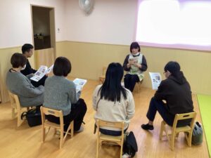 懇談会では、入園当初の子どもの姿と今の子どもたちの成長を