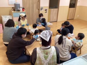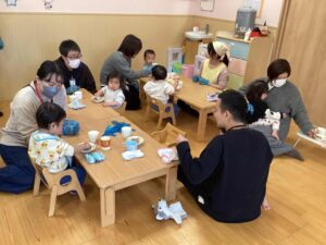 保育参観では、保護者の方と一緒に午後おやつの時間を過ごしました。