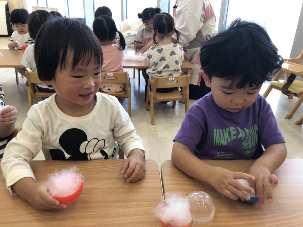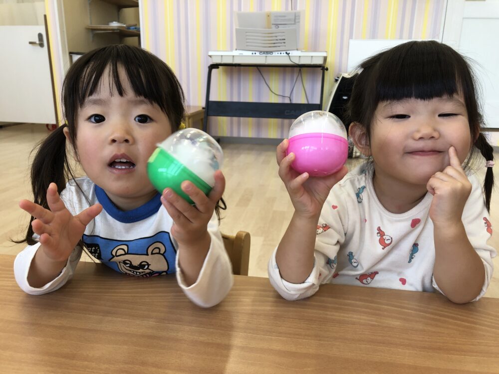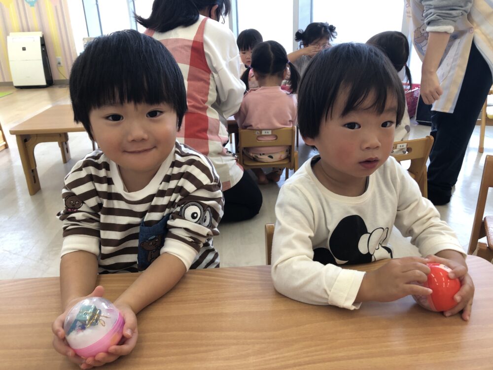イオンモール与野ルピナス保育園 園の様子 2025.11.29 オーナメント作り!(にじ組) クリスマスツリーに飾るオーナメント作りをしました! カプセルを選ぶところから真剣なにじ組さん!みんなそれぞれ好きな色を選びウキウキです! ビーズやプレゼントなどを出すとみんな興味津々です♪お友だちと一緒に覗き込む姿がとっても可愛かったです♡ 完成すると嬉しそうに見せてくれたにじ組さんです! 実際にクリスマスツリーに飾るのが楽しみです!