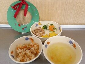 給食もクリスマスメニューで美味しそうに食べてた子どもたち。