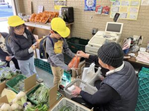 たいよう組さんがいつも給食の食材をを運んでくれるまるこうさん(八百屋)に買い物に行き、