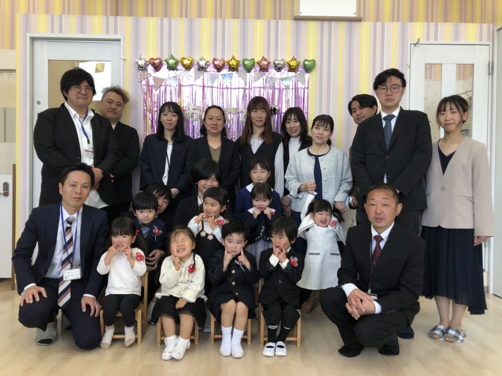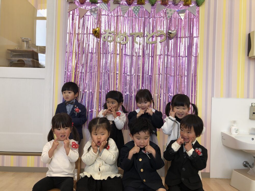 イオンモール与野ルピナス保育園 園の様子 2026.03.21 修了式🌸(にじ組) 3月21日にルピナス保育園の修了式を行いました! 緊張も見られましたがみんなしっかりと修了証書をもらうことができていました。 にじの歌も大きな声で歌うことができましたね♪ 今日まで毎日練習をしてきたので、泣かずに最後まで頑張る姿を見ることができて嬉しかったです☆ 式が終わるとみんなで写真撮影です!いい笑顔を見せてくれました!