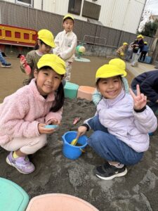 子どもたちは大喜びで砂遊びを楽しんでいました🎵