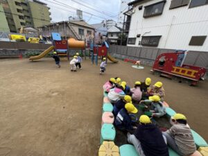遊び終わった後、保育者が何も言わなくても座っていた縁取りの所を