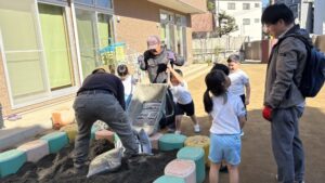 砂を運ぶなどのお手伝いをしました。