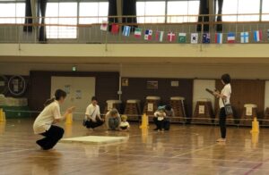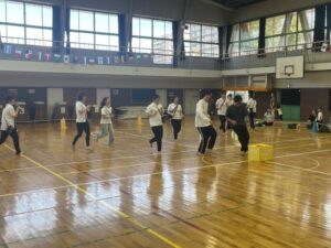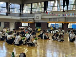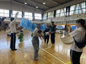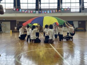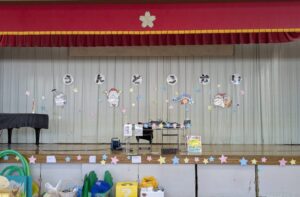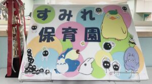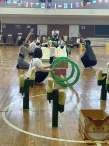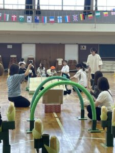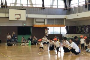 お家の人と一緒に葉っぱのトンネルを潜ったり