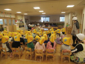 今日は、震度5の地震が起きた想定で訓練を行いました。