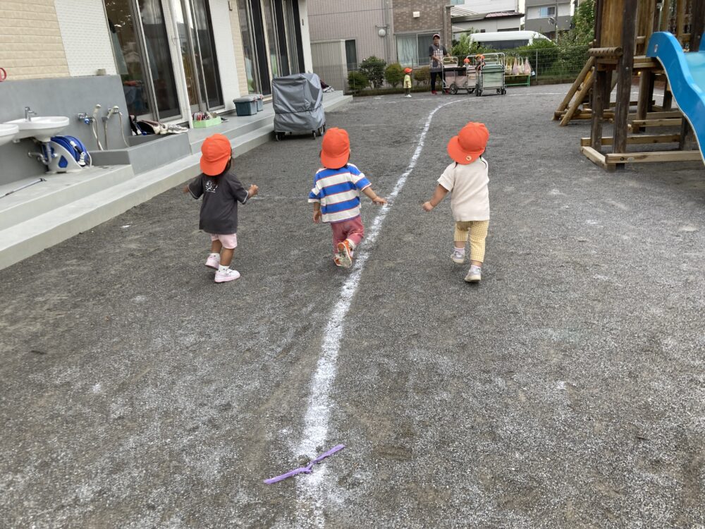 かけっこの練習では、名前を呼ばれて「よーい、どん!」保育者が待っているゴールへ一直線!